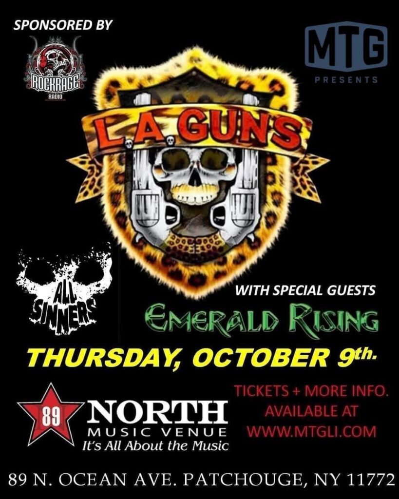 Emerald Rising opens for LA Guns Date: October 9, 2025 Time:7:00pm Location: Patchogue, NY Venue: 89 North Music Venue – 89 North Ocean Ave Join Us
